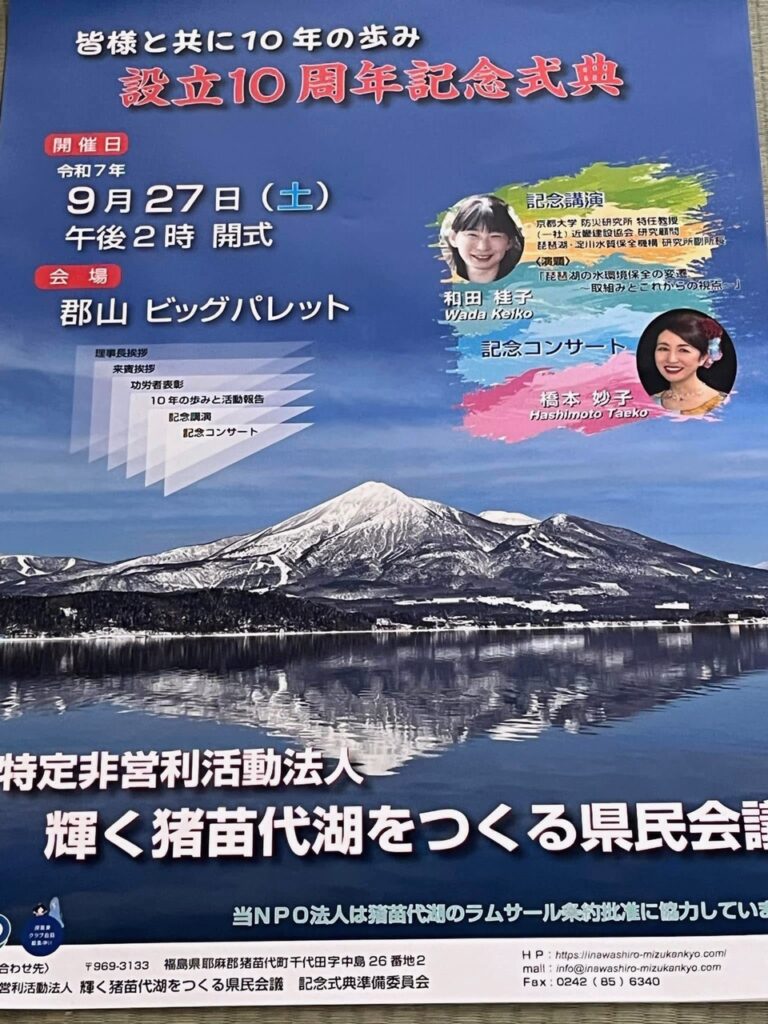 「特定非営利活動法人 輝く猪苗代湖をつくる県民会議」設立10周年記念式典9/27(土)開催のご紹介 ~ラムサール条約批准に協力~