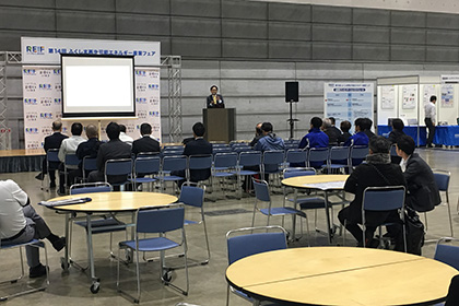 ~10月16・17日に郡山市のビッグパレットで開催された「第14回ふくしま再生可能エネルギー産業フェア」は約170社・団体が出展。国・自治体・再エネ等支援機関・学術・研究・高等教育機関が多く見受けられ初日から多くの入場者(高校生の団体も)が見受けられました。
