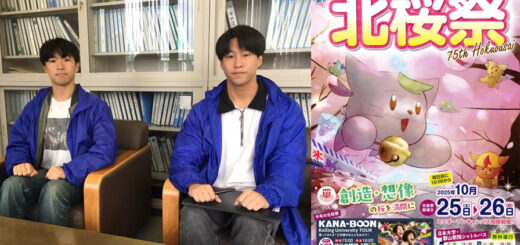 今月、75回目の開催を迎える北桜祭を前に、実行委員会の髙橋悠委員長(機械3年)、中村大翼副委員長(情報3年)が校友会事務局を訪れ、校友の皆さんへ「創造・想像の桜を満開に」がテーマの第75回北桜祭へお越しください!と来場を呼び掛けました。ありがとうございました。